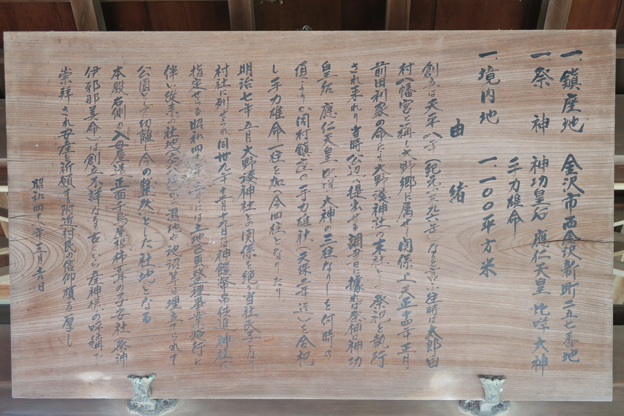 2015年5月14日2015年7月27日 禰宜 八幡神社 正面第二鳥居より 八幡神社 正面第二鳥居より 八幡神社由緒 氏子集が整備管理する手水舎 八幡神社 拝殿正面 八幡神社 拝殿紋入り鬼瓦 西金沢町公民館 摂社 子安神社 正面鳥居入り口より このページを印刷