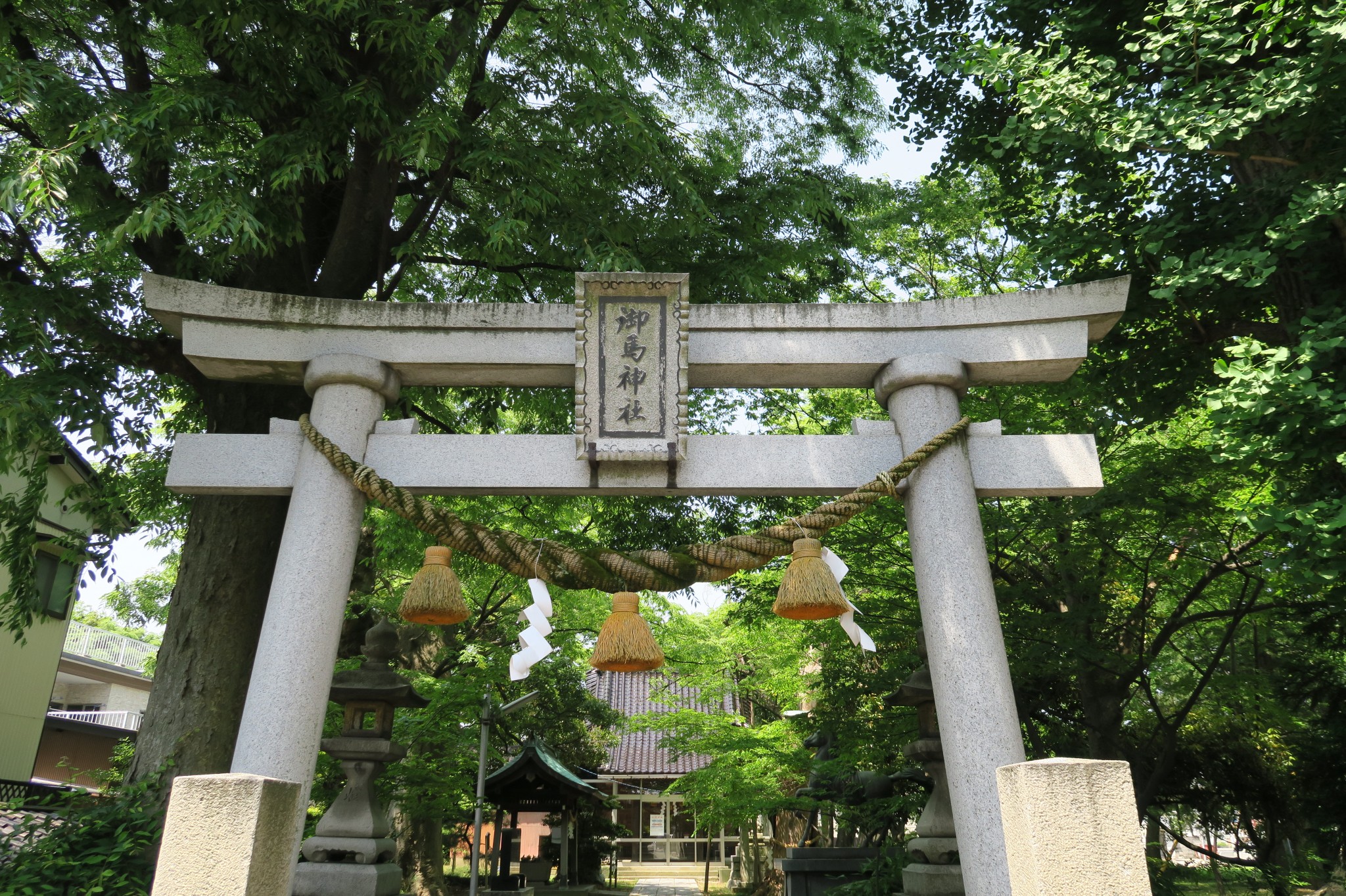 2015年10月3日2015年10月3日 禰宜 平成27年5月20日の間明町 延喜式内社 御馬神社の様子を撮影しました。 延喜式内社 御馬神社 神社名石柱 御馬神社 参道を望む行動より撮影 御馬神社 参道を望む行動より撮影 2 社名石柱裏面 堂々とそびえる御馬神社の鳥居 美しい石畳で整備されている自慢の境内参道 奉納されている神馬の像 中には金沢市保存樹木に指定されている木々達(全てではありません) 御馬神社由来碑 鳥居横の御神木 鳥居背面 間明町内からの暖かい助力を得て樹勢を取り戻しつつある神木「」 大神様の御威徳を示す大木 整備清掃されているお社脇の手水舎 御馬神社拝殿正面 拝殿棟木瓦上に座するシャチホコ 紋の入った拝殿屋根瓦 年月を多少感じる、自然の芽を育む屋根 精悍な狛犬 拝殿から望む鳥居 命の息吹感じる新芽を携えた大木 保存樹「ケヤキ」 森の中に佇む拝殿 驚きを隠せない空洞を持つ巨木(立ち入り厳禁) 美しい新緑を湛える境内の木々 空の明るい晴れた日には、十社会各お社に巡って写真撮影させていただいております。 撮影機材:キヤノン G7X このページを印刷
