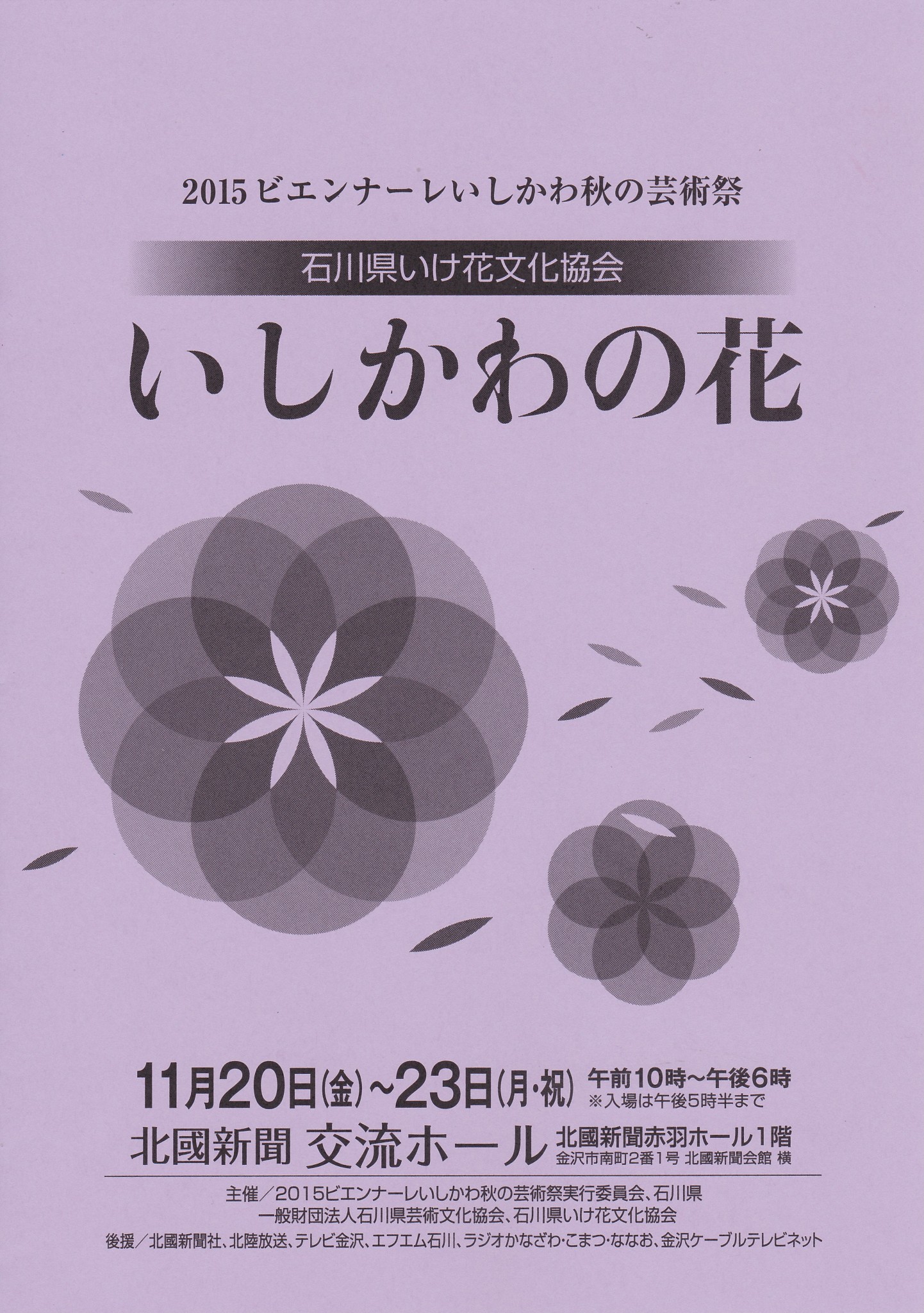 11月20日(金)から11月23日(月・祝)にかけての4日間、北國新聞赤羽ホール内の交流ホールにて、2015ビエンナーレいしかわ秋の芸術祭実行委員会、石川県一般財団法人石川県芸術文化協会、石川県いけ花文化協会主催による、花展「いしかわの花」が催されます。