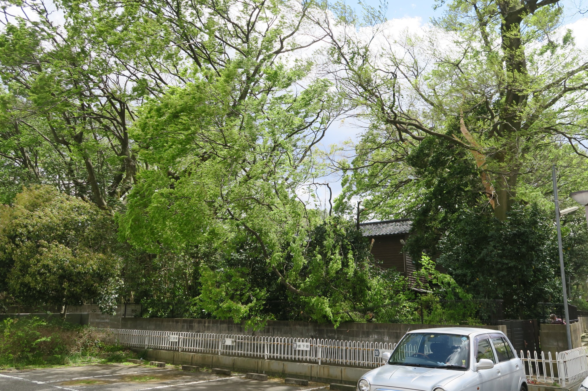 大きな枝が落ちましたが、ほかの木々がクッションになりある程度の被害で抑えられた感があります。