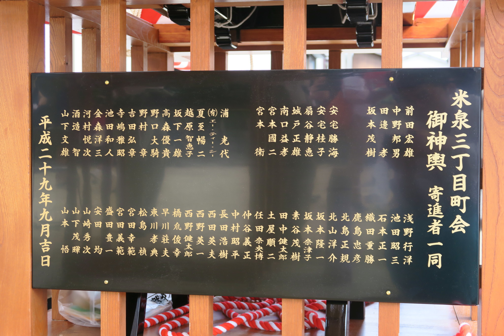 そして米泉三丁目町会の皆様が誠心大切になさるこの神輿は華麗な姿を三十年経っても残していることから、これまで如何に地域の皆様が揃って社会をお守りいただいたのかがうかがい知れます。