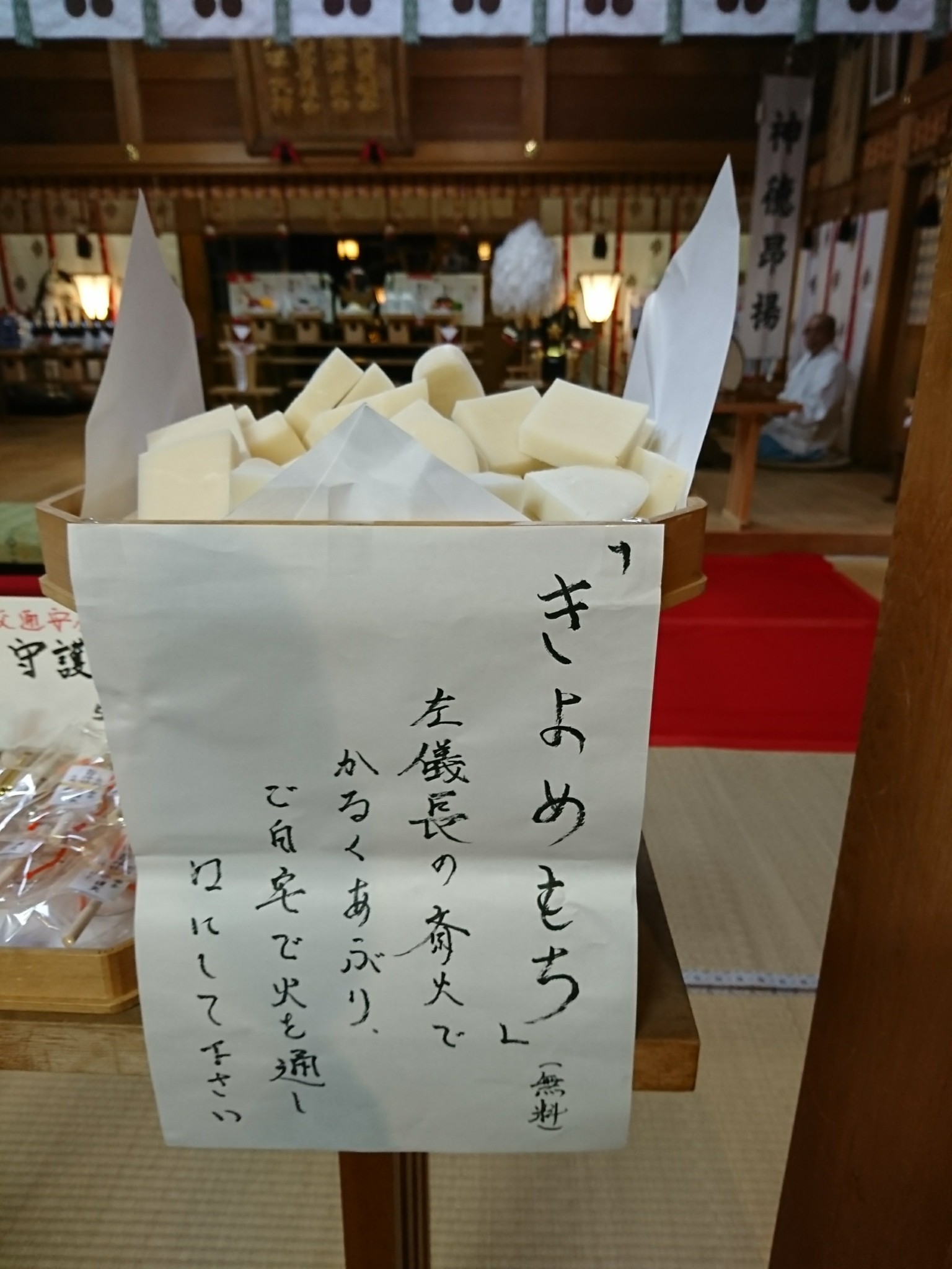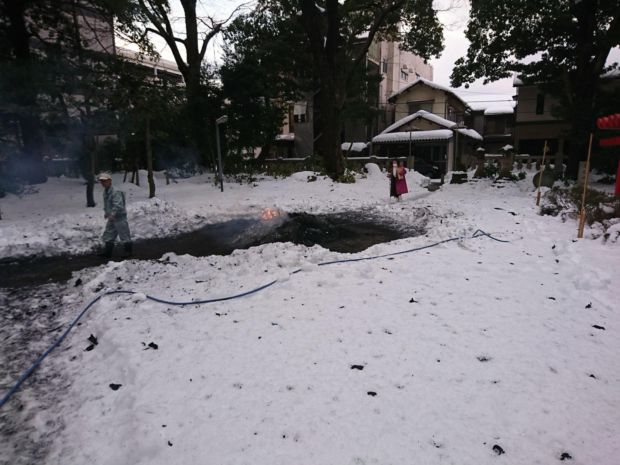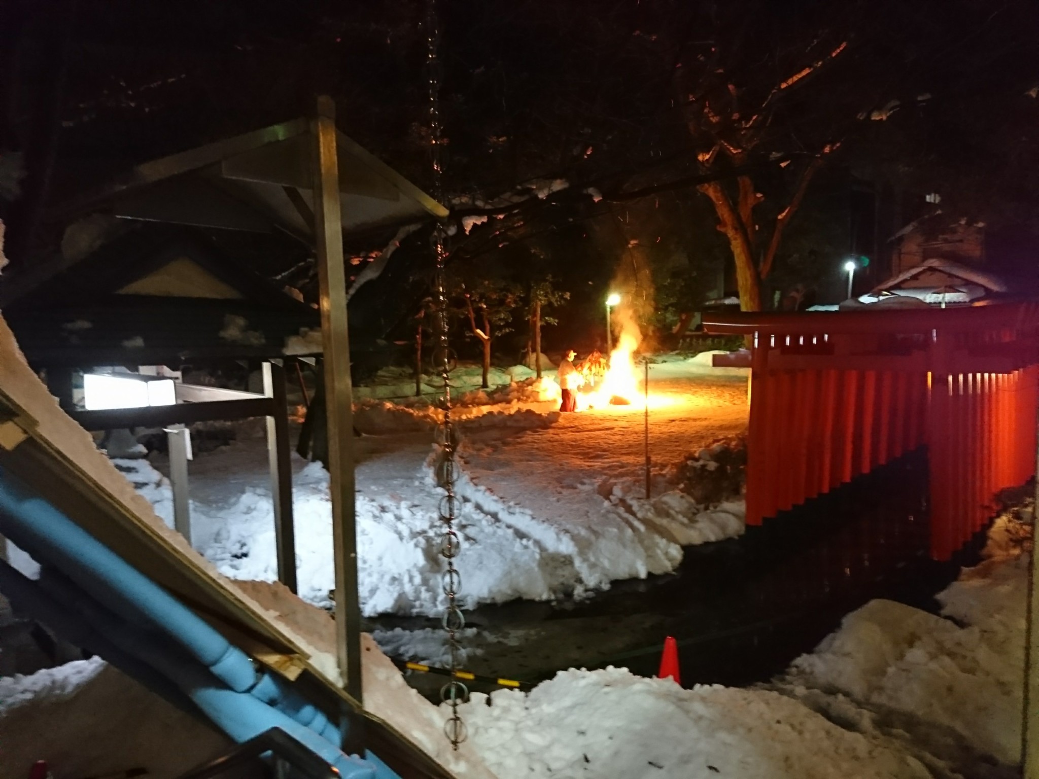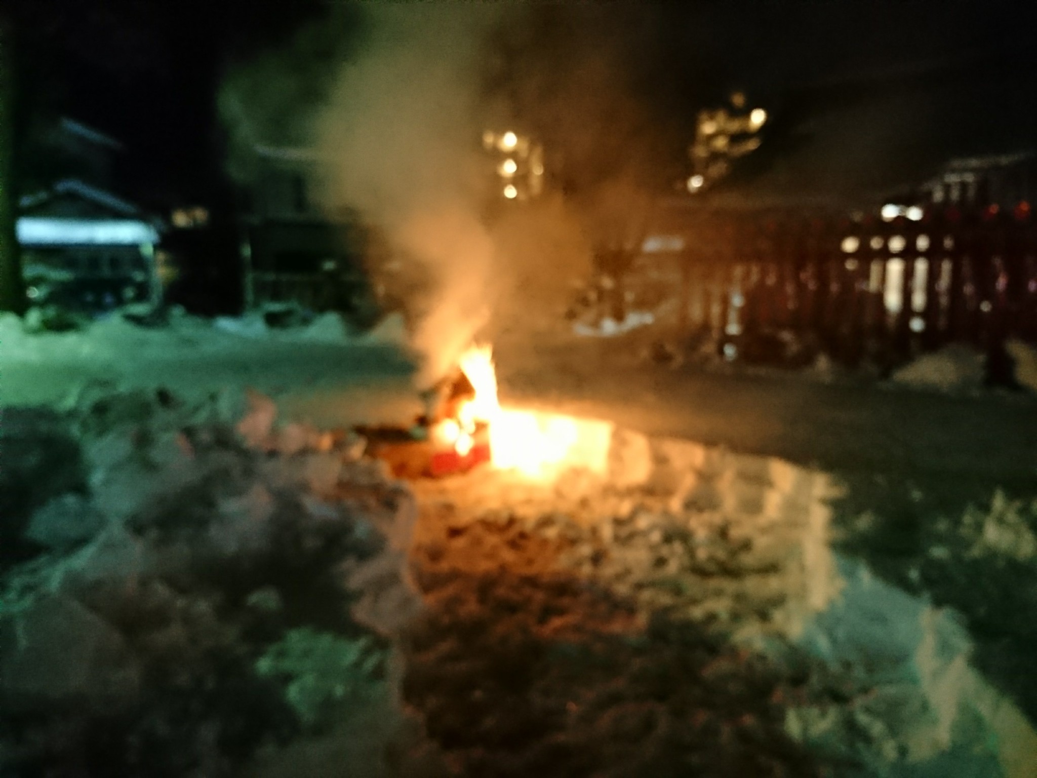 2018年1月15日2018年1月15日 禰宜 午前5時、神社周辺の道路状況はかなり悪く、立ち往生する車が頻発しているとのこと。 お越しの際には十分な時間と余裕を持っていただき、少し雪が溶けてからにしてもよろしいかと存じます。 本日は、15時まで火をつけております。 お持ちを食べる習慣 春日神社では、厄除のご祈祷にみえられた方からご奉納いただいたお餅を小さく分けて、左儀長の日に皆様へお分けしております。 無事終了 消火をし、本年の左儀長神事はつつがなく終了いたしました。 これ以降は、境内の納札所にお納めください。 このページを印刷
