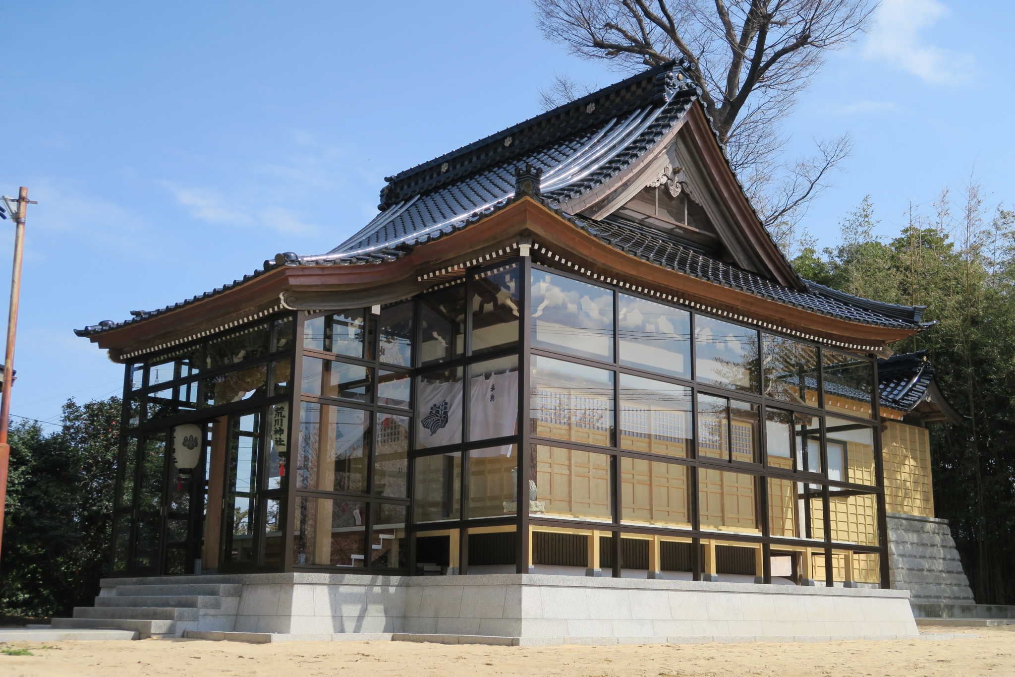 平成の大修復事業となった荒川神社では、古い建材はそのまま生かし必要な部分のみを新しい建材で補う形が取られ、斉田工務店の皆様によって美しく生まれ変わりました。