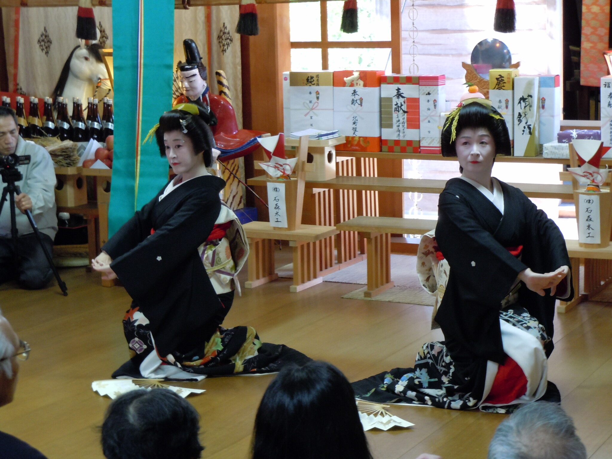 令和5年の春日神社初春を彩る慶賀行事「舞初め奉納」は、にし茶屋街の「華の宿」さんが担って下さる事となりました。