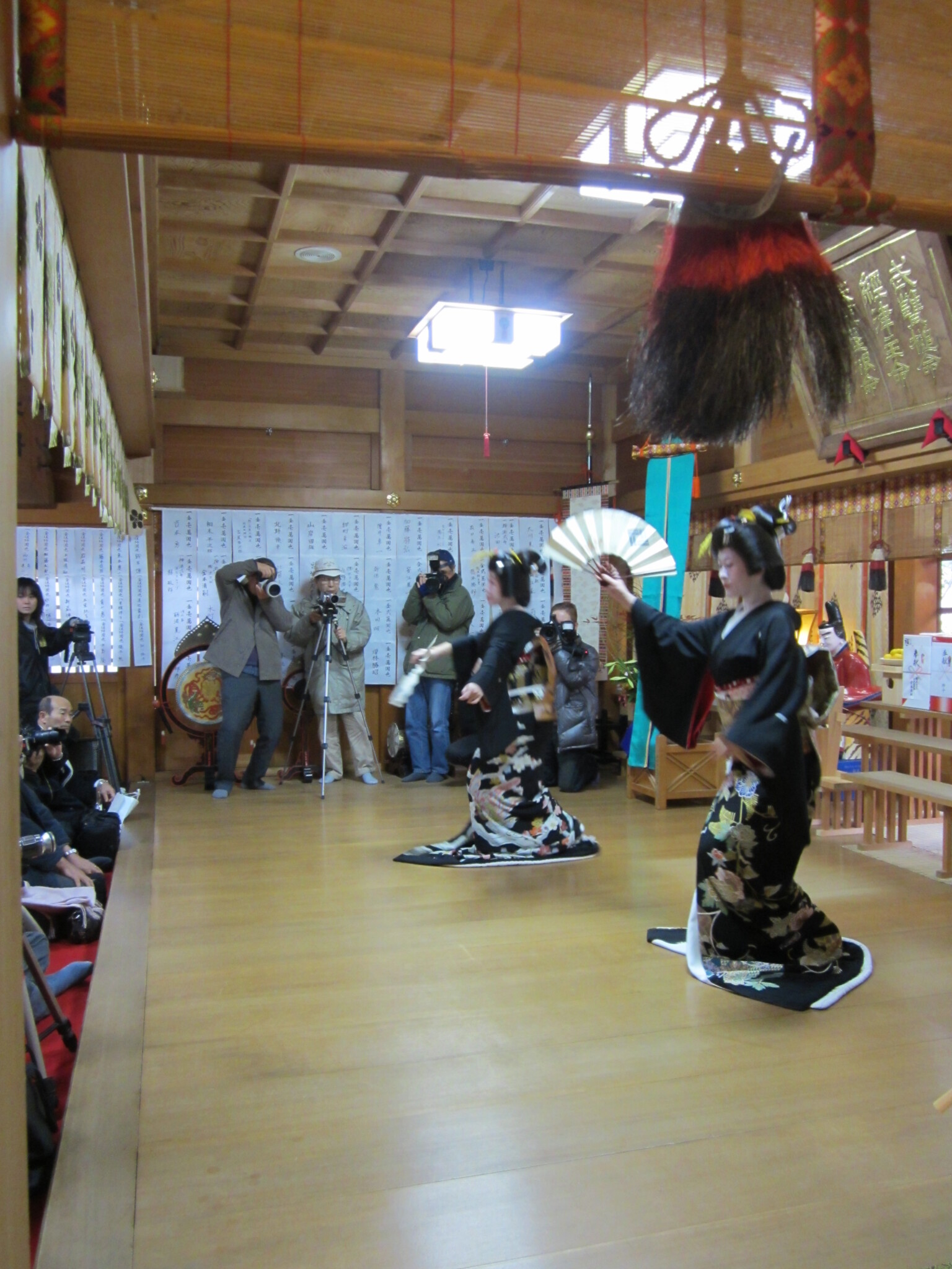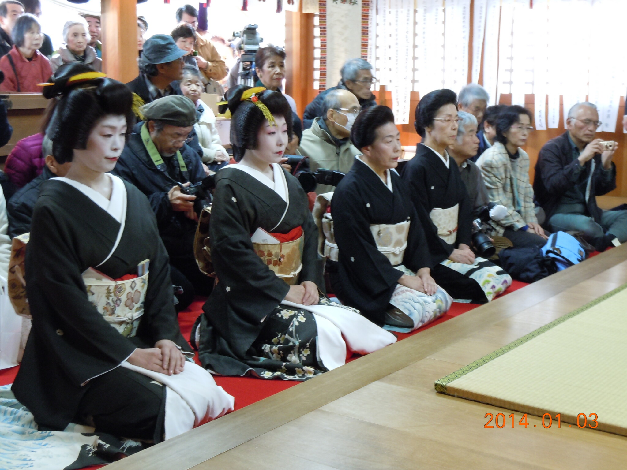 そもそも、「新年初春を迎えた喜びと、その一年のにし茶屋街の発展繁栄や平和安寧を願い、氏神様の前で自らの芸を奉納する」事が第一義として始められた行事ですので、関係する多くの方々の意気込み足るや大きなものとなり、その責任は年を重ねる毎に重くなってきている事でしょう。