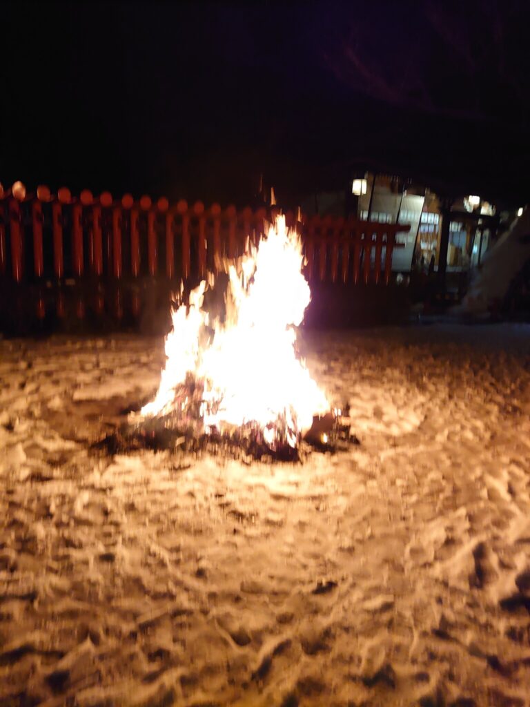 おみくじに込めた祈願も、左儀長の斎火にくべさせていただきます