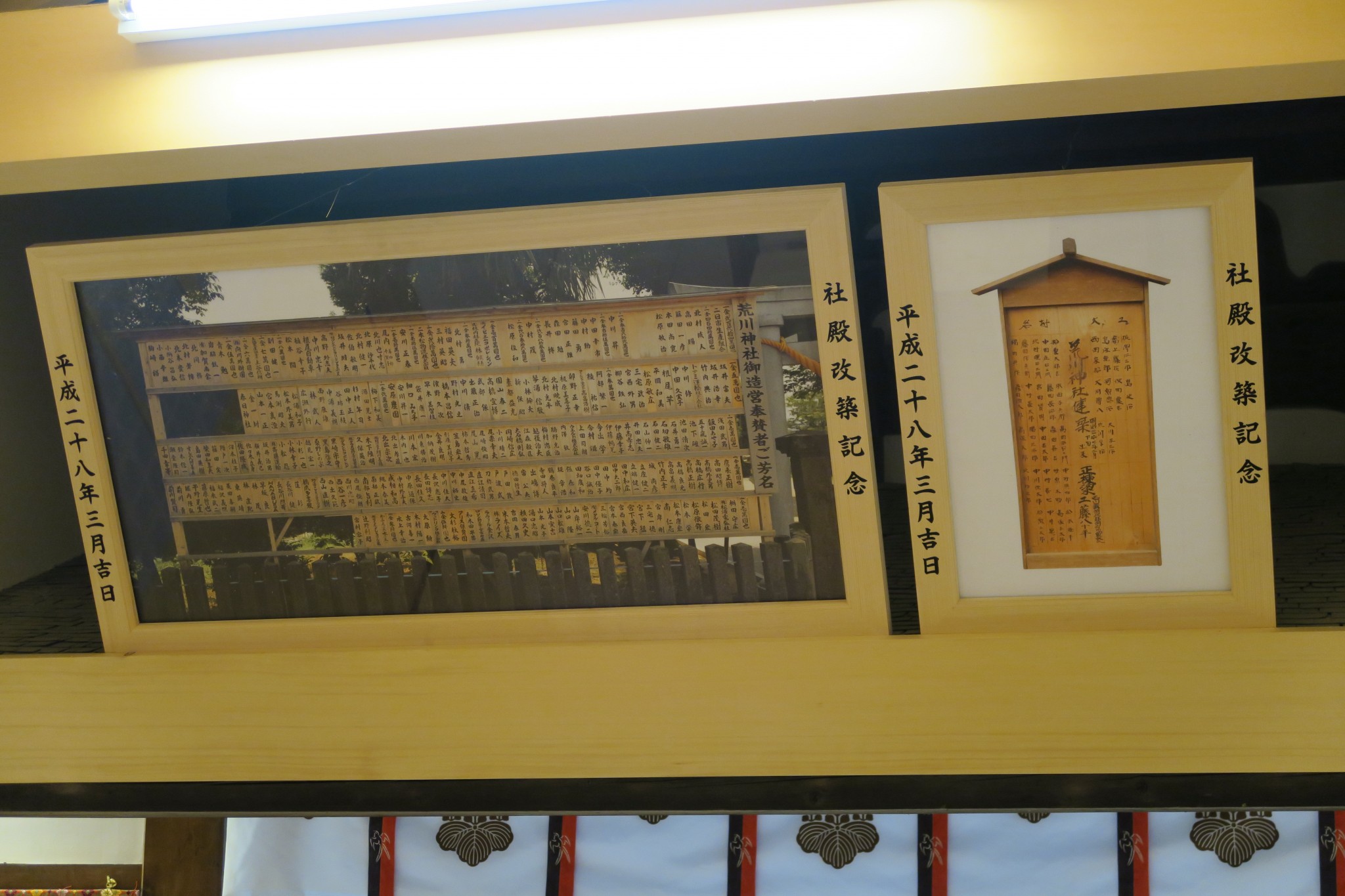 数十年来の悲願であった拝殿の改築事業が平成27年に工事開始となり、平成28年3月26日に仮伝として増泉春日神社の摂社出世稲荷神社より荒川神社社殿へとお戻りいただき、平成28年3月27日には盛大に慶賀行事が行われ、地域住民が揃ってこれを寿ぐとともに子供たちは稚児行列を成してお祝いがされました。