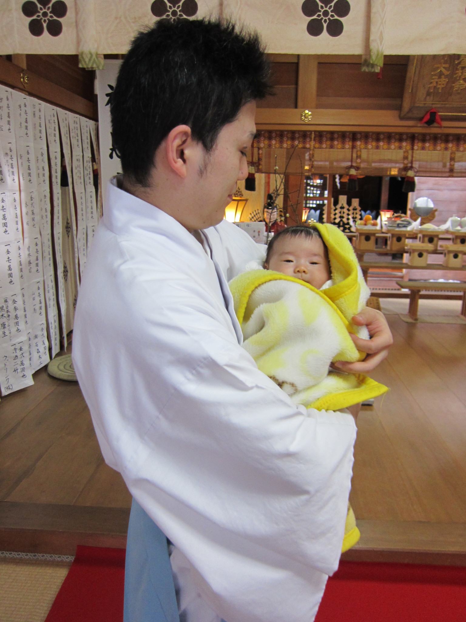 おばあちゃんがご一緒に詣でてらっしゃらない場合は、お母さんが抱いてあげて下さい。