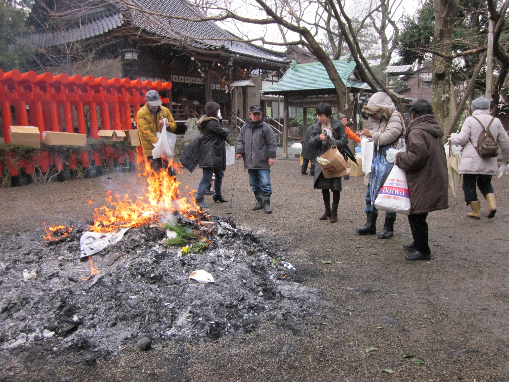 お正月に年神様を迎えた注連飾りや門松を神社に持ち寄り、神主が祓い清めた炎で燃やし、迎えた年神様を高天原にお見送りする神事です。
